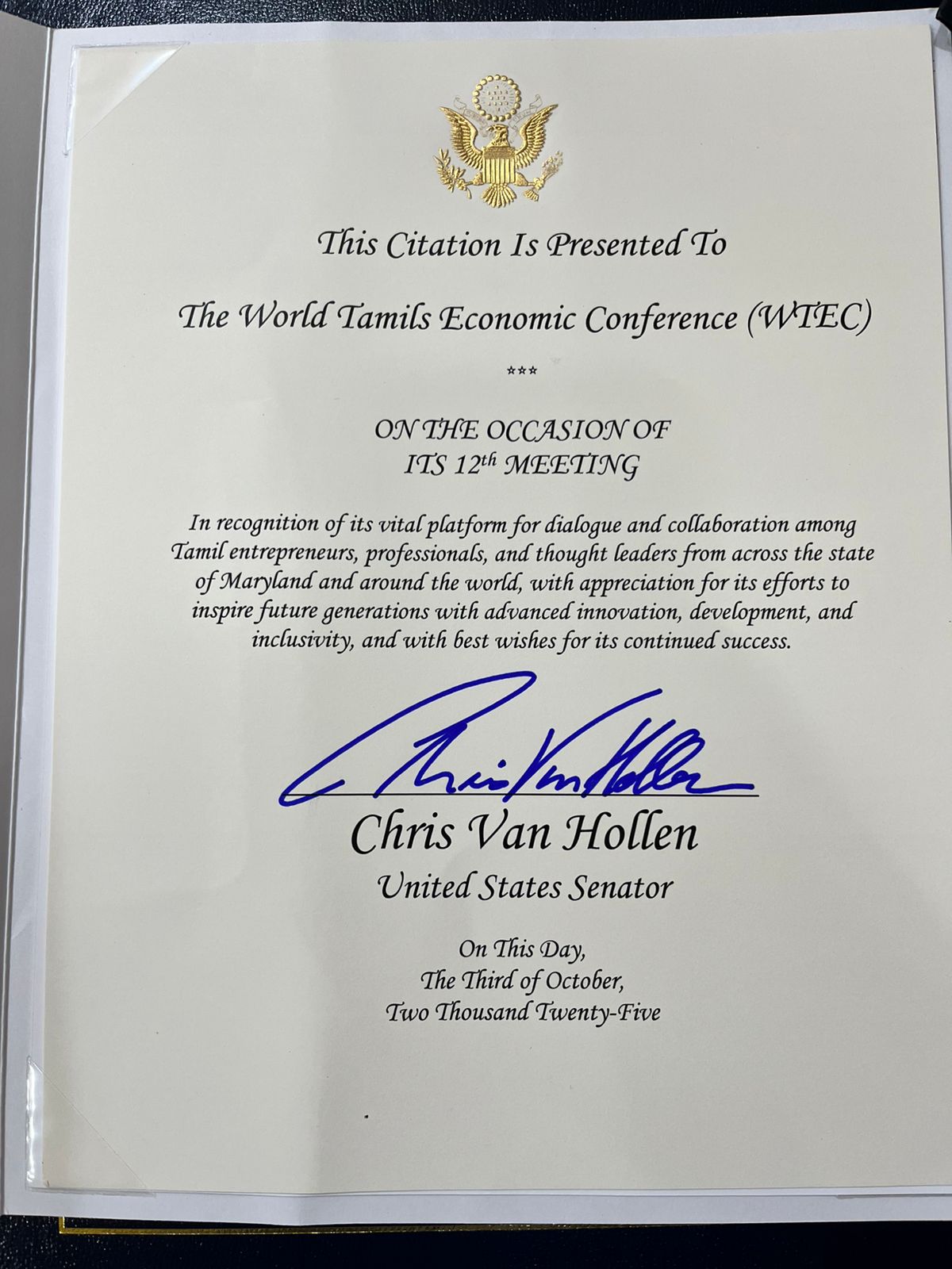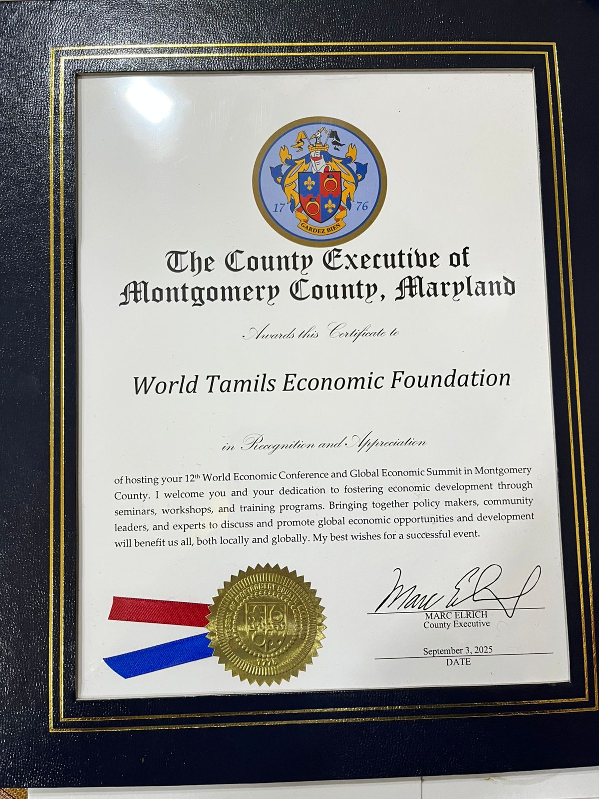 WELCOME TO 12th WORLD TAMILS ECONOMIC CONFERENCE AND GLOBAL ECONOMIC SUMMIT 2025 WASHINGTON DC, USA